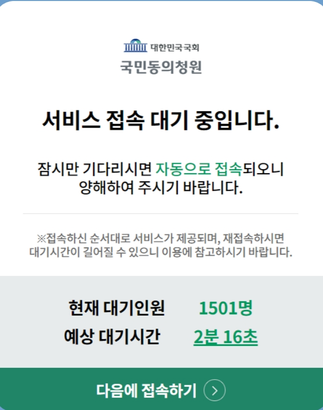 - 회원가입 또는 본인인증: 국민동의청원 사이트에 회원가입하거나 본인인증 절차를 거칩니다.