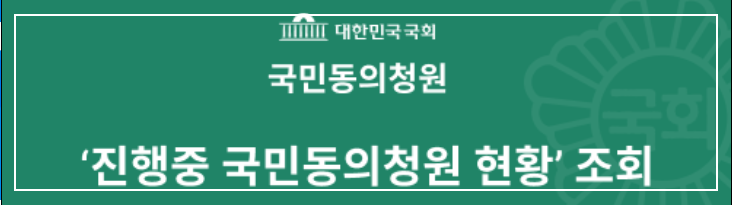 국회에서는 국민 동의 청원 현황을 조회할 수 있도록 링크를 준비했습니다.