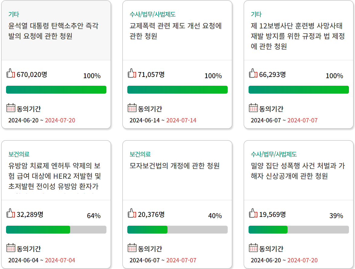 - 동의 기간: 2024년 6월 20일부터 2024년 7월 20일까지 (청원서 공개 후 30일 이내)